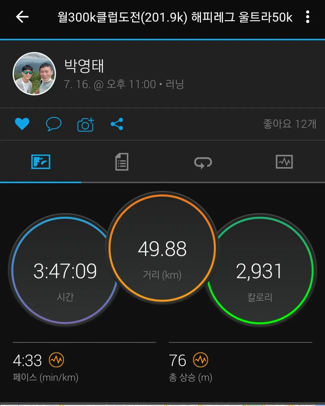 7월 한 달 함께 뛰어준 모든분들 감사드립니다. 특히나 지베이스 맴버들과 반달0130맴버들. 그리고 권은주 감독님 러닝클라스. 한여름밤 50키로 레이스가 젤 기억에 남고. 러닝 후 마시는 막걸리 한 잔도 기억에 남네요.