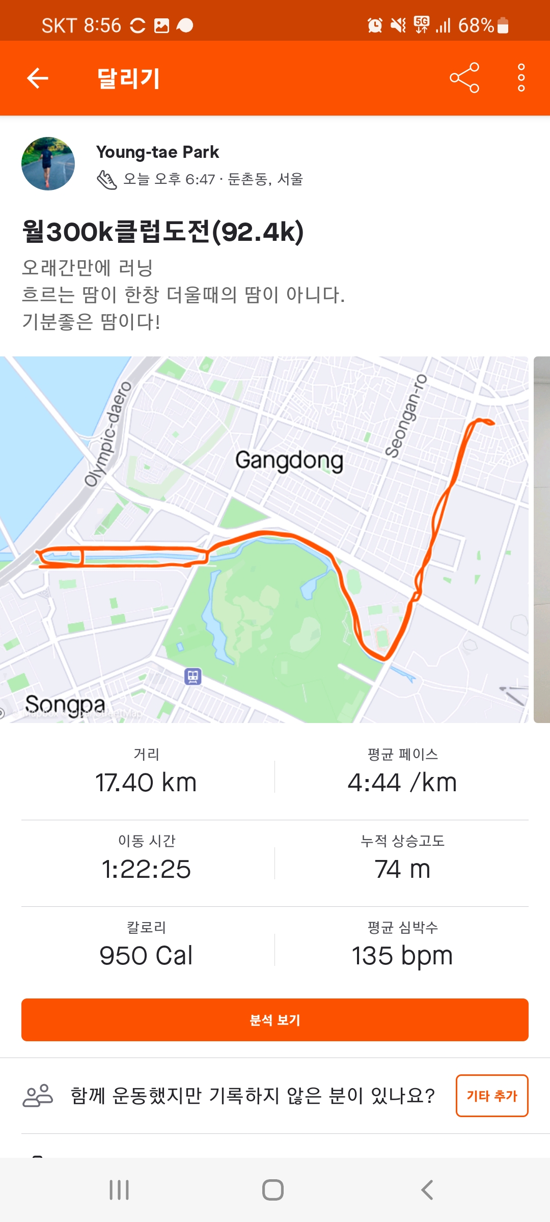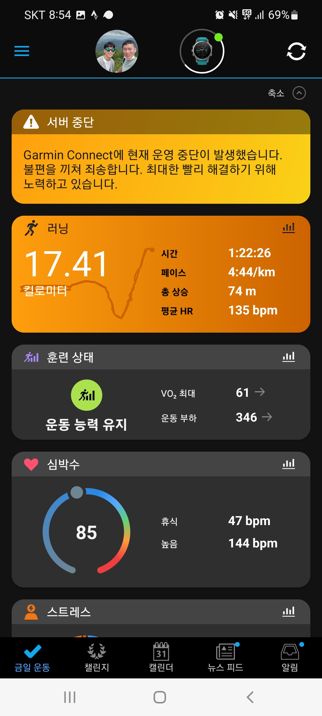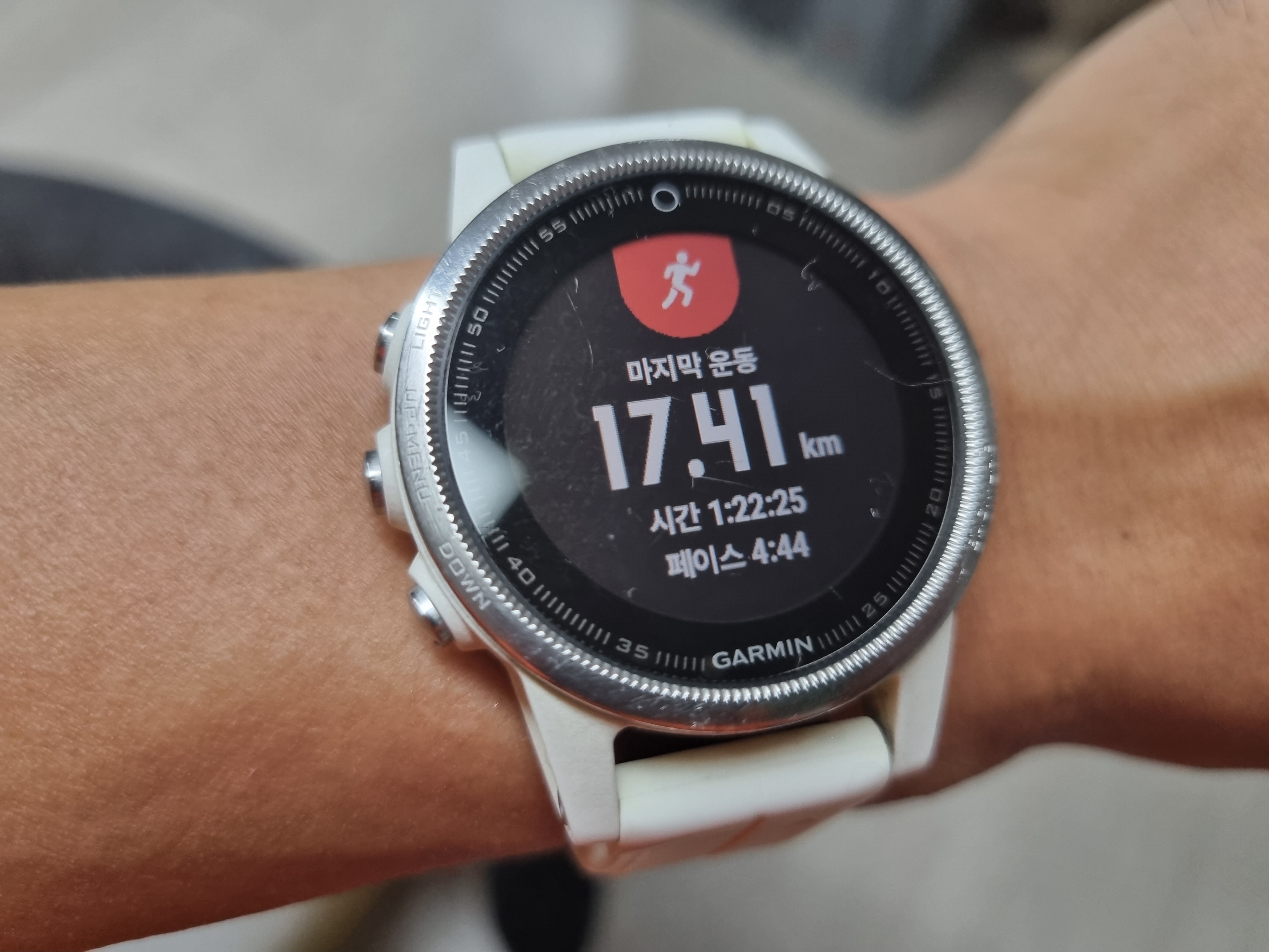 그래도 17키로 완료.근데 가민도 에러가 뜬다.