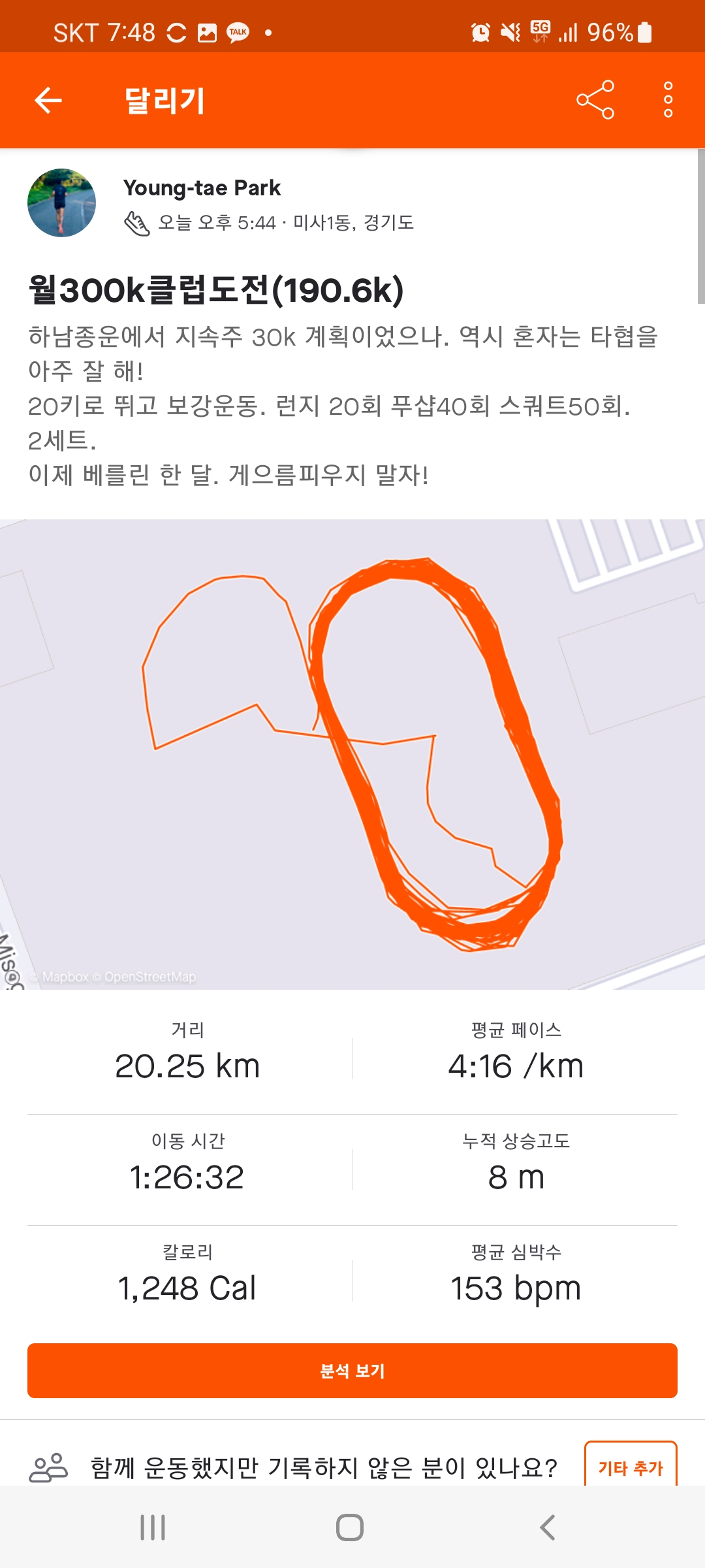 20뛰고 오늘은 보강까지 조금 해주고.
