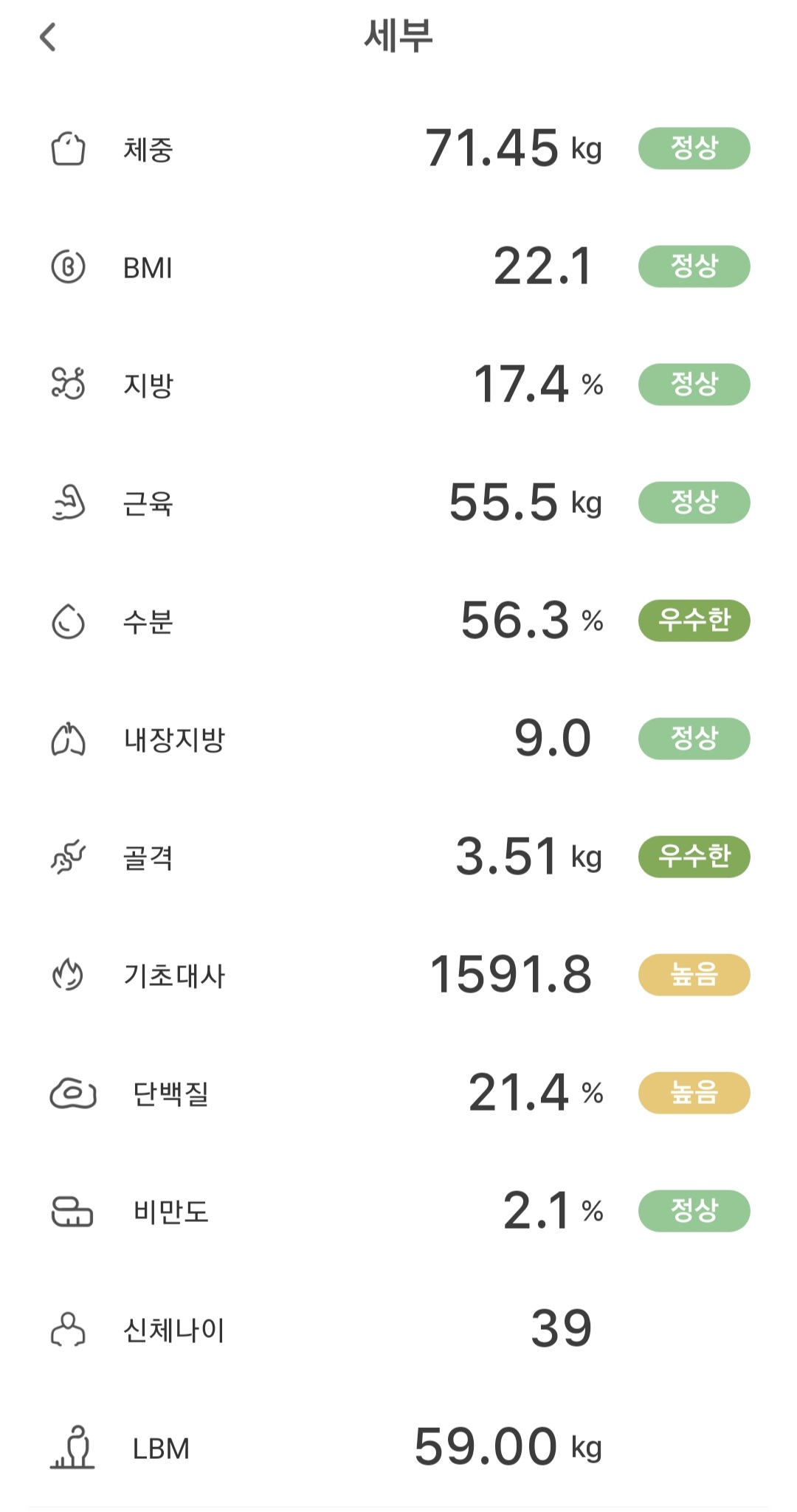 이건 일주일 전 체중계 데이터.