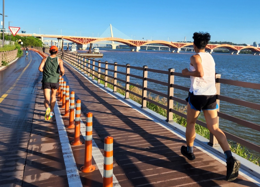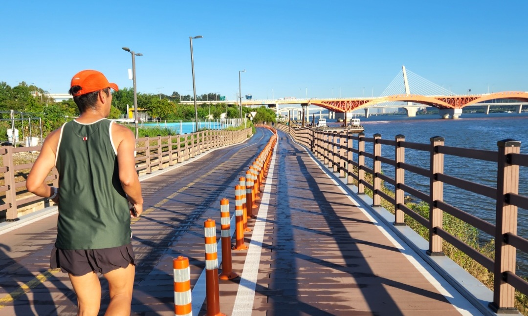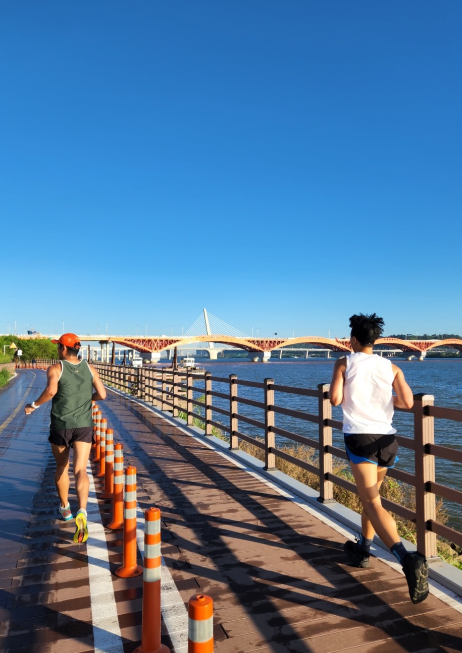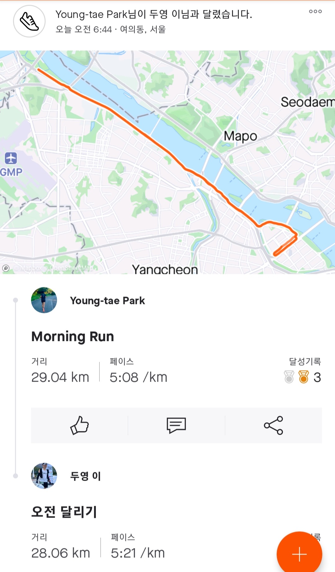 셋이서 뛰다가 덕재는 10키로에서 턴. 나랑 두영이는 행주대교 바로 압까지 갔다가 턴. 출발지로 돌아오니 29키로 완료. 오늘은 가볍게 뛰어서 그런지 데미지도 별로 없다. 이제 진짜 운동하기 좋아지는 가을날씨다!