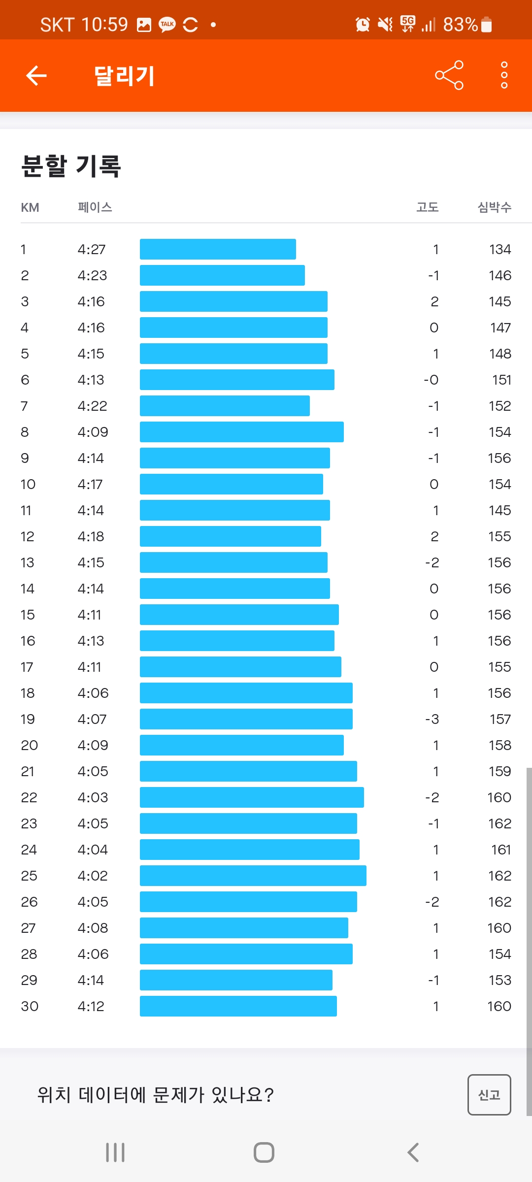 대환이의 리딩으로 페이스 맞춰서 가니 20키로 까지는 무난하게. 20키로 즈음에서 몸이 괜찮아서 앞질러서 가고픈 마음은 굴뚝같았지만 끝까지 인내하며 안대빵 뒤를 따르기로. 그런데 내가 10키로, 20키로 돌파하면서 먹을 에너지젤을 평중마 테이블에 2개를 놔뒀는데. 10키로때는 두개 있는거 확인하고 하나 먹었는데 20키로에서 먹을려니 없어졌다. 혹시나 주변에 떨어졌나 몇번을 확인해도 없다. 나보다 더 필요한 사람이 가져갔겠거니 하고 계속해서 레이스. 하지만 레이스중에 자기가 계쇡했던 곳에서 영양섭취가 안된다는건 바로 에너지 고갈이고 몸에서는 바로 나타나고. 이게 천천히 뛸때는 안먹어도 되는데 대회 페이스로 뛸때는 꼭 필요한!