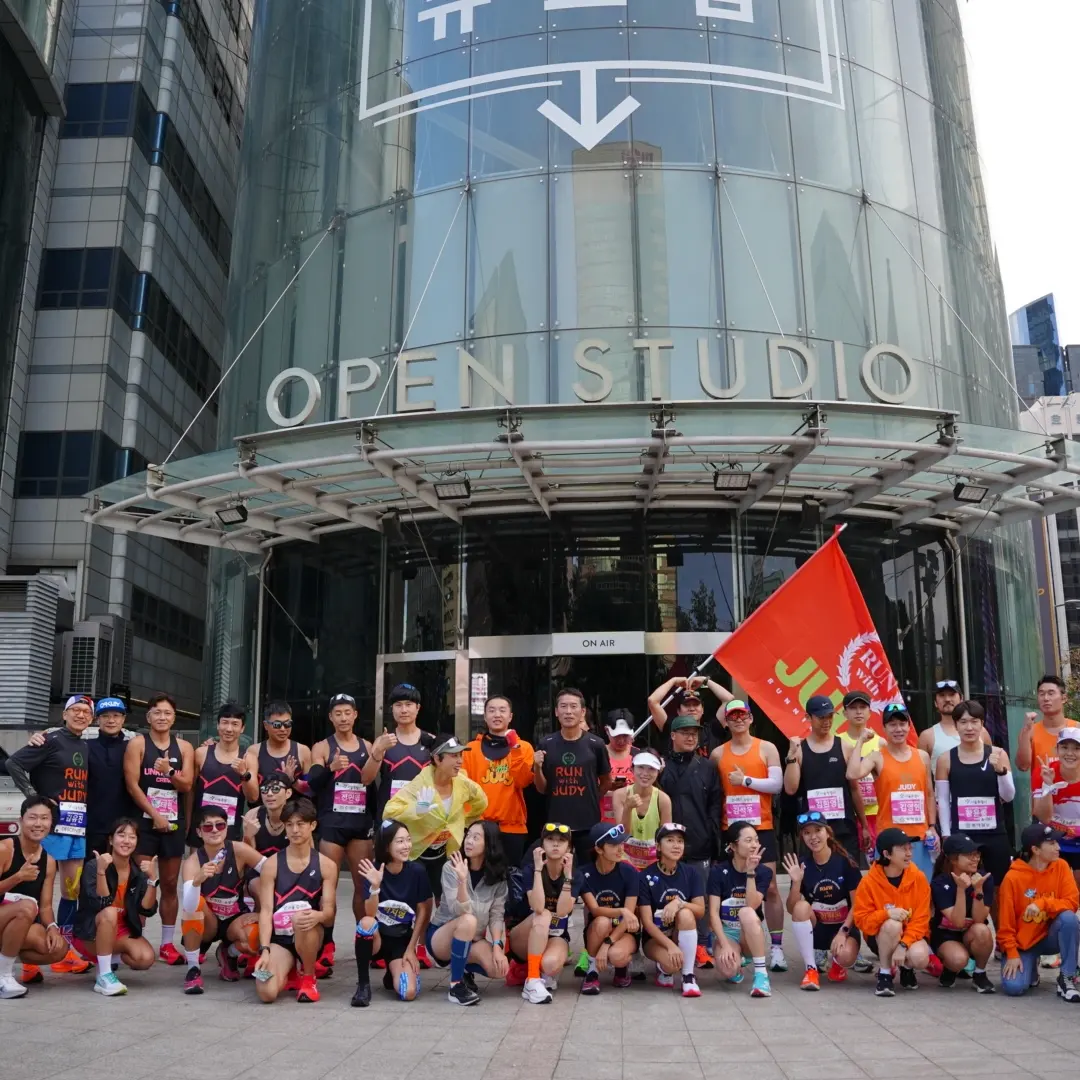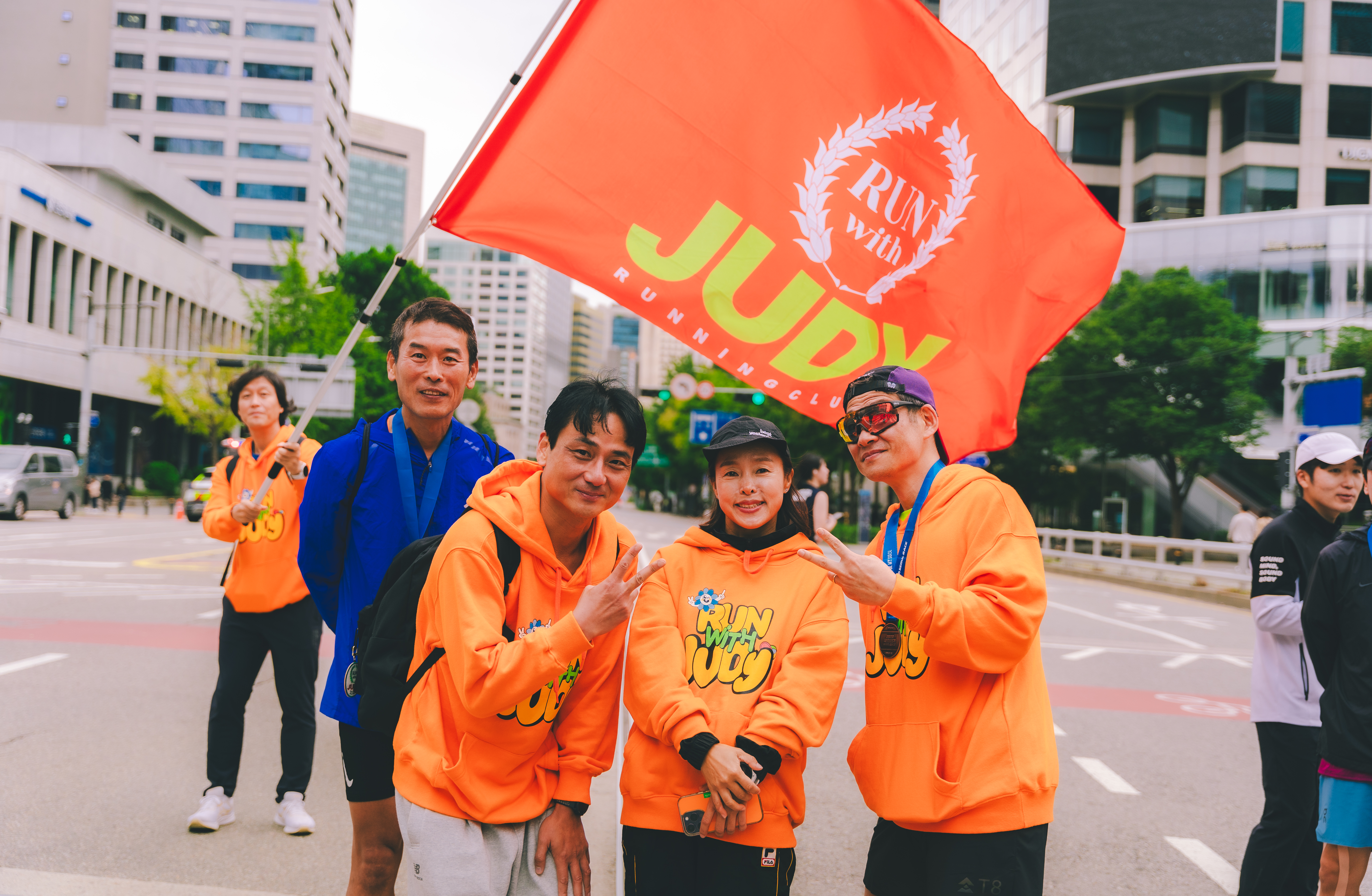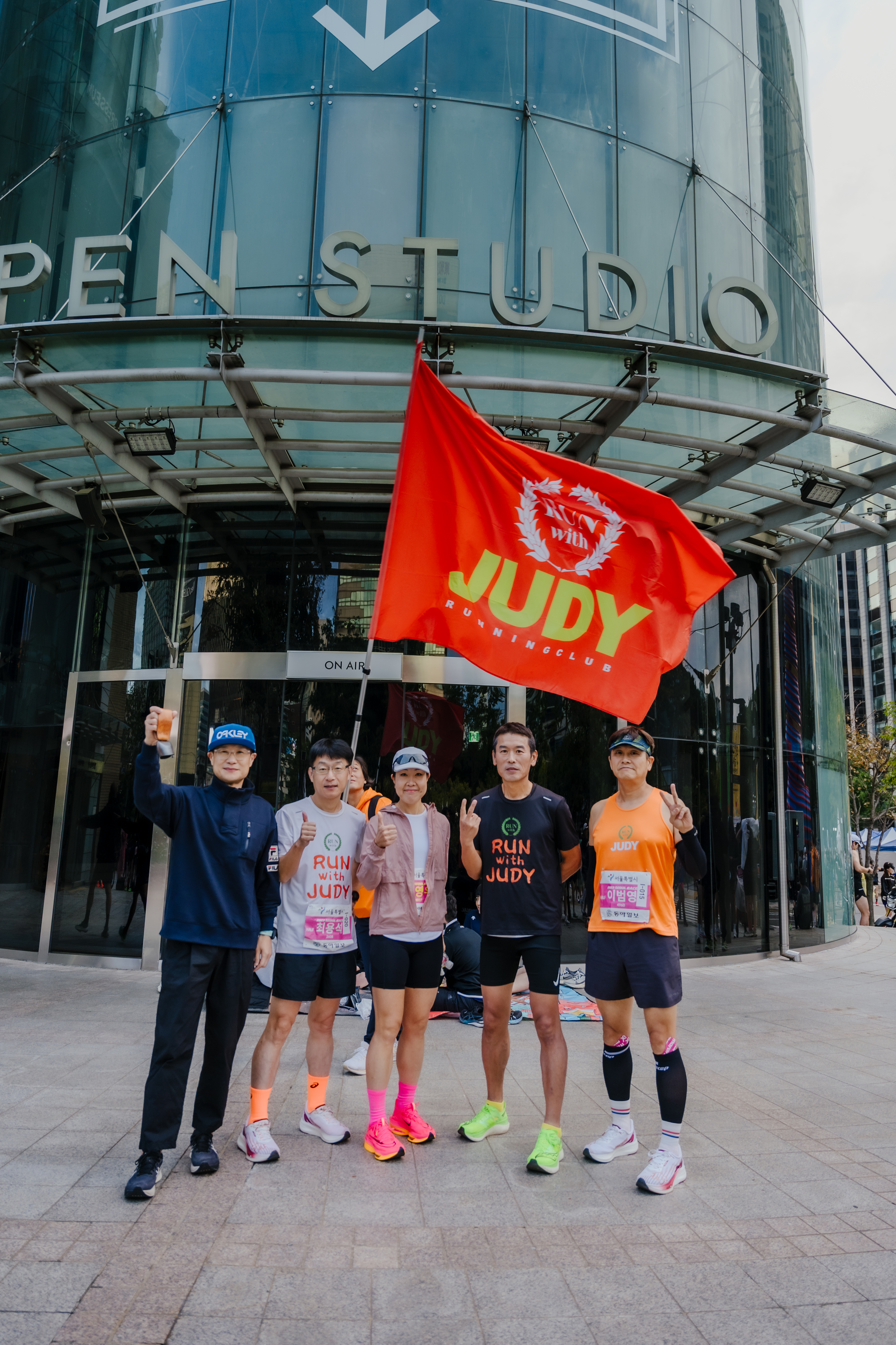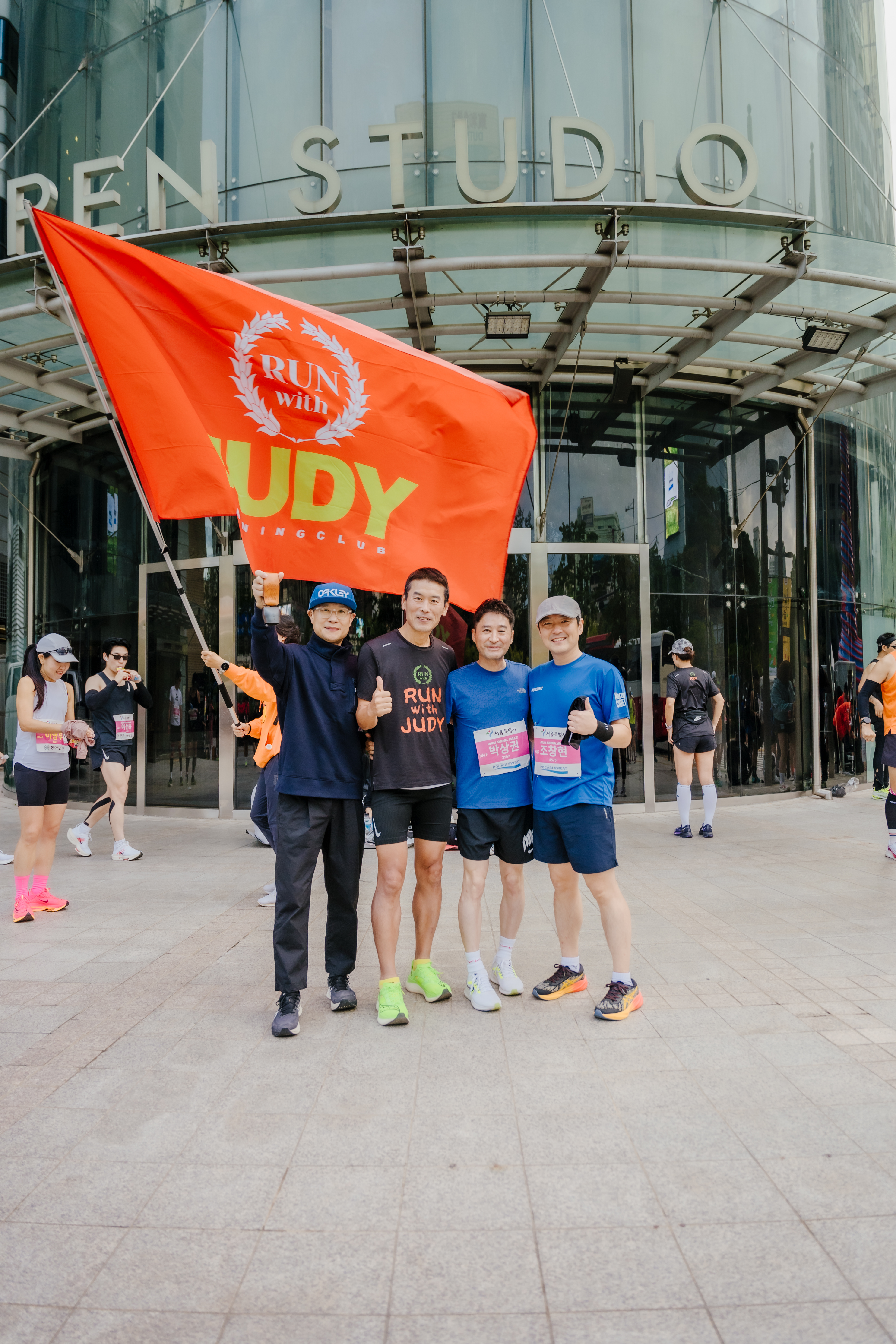 주디 권은주 감독과 여러분들 만나서 기념촬영 후 각 자 워밍업. 좀 이른시간 같아서 난 7시30분부터 2키로 워밍업에 질주 3회 정도.