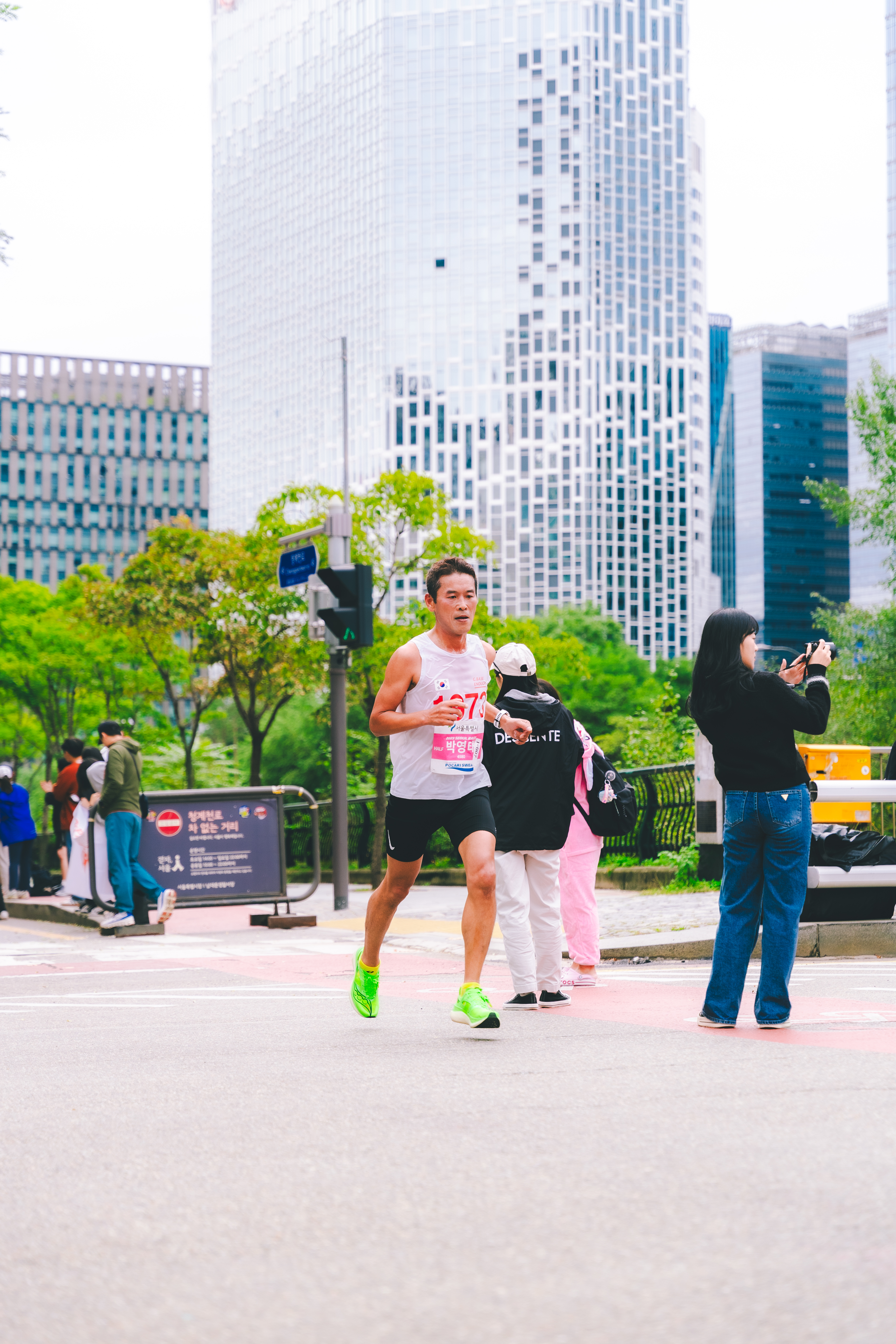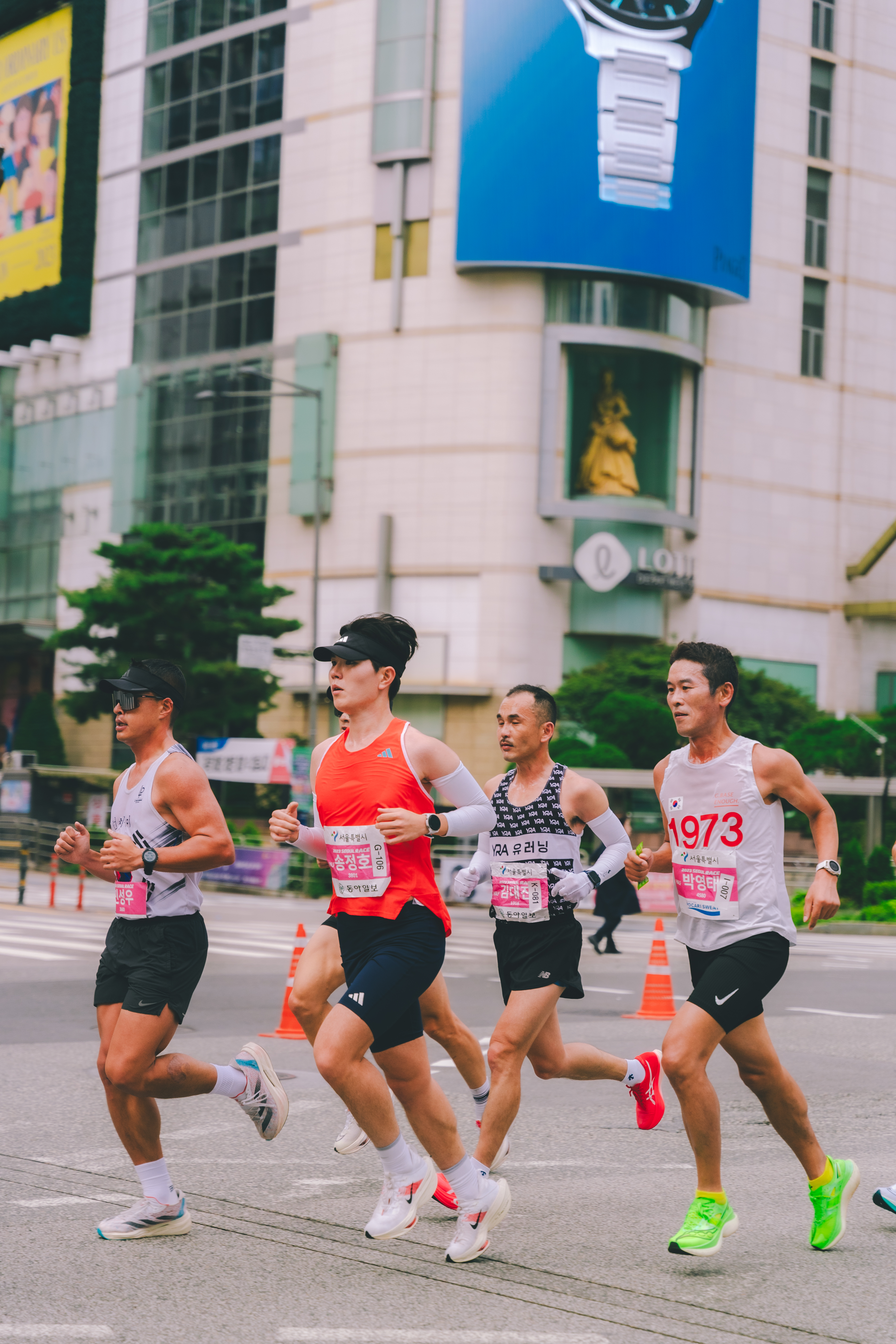 이 그룹으로 12키로까지 계속해서 340언더로 밀어진다. 이후 그룹은 흐트러지고 개인 능력껏 레이스.근데 참 이상하게도 그룹이 흐트러지자 페이스가 340을 넘어간다. 그래도 계속해서 한두명과 함께 레이스.