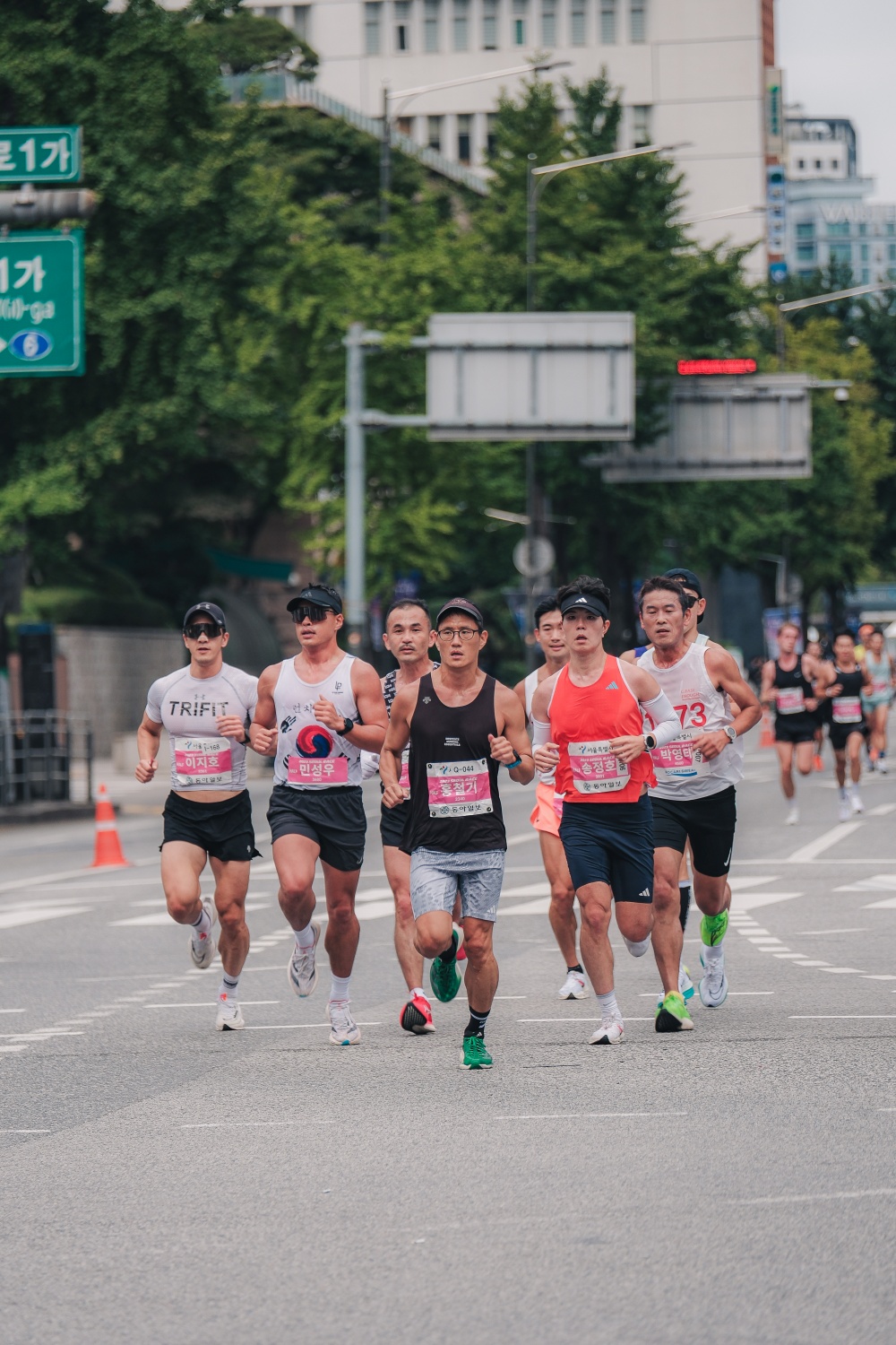 그리고 출발. 1키로 페이스가 337나온다. 계획은 350이었는데. 조금 늦춰서 계속 청와대 앞까지 달린다. 청와대를 지나면서부터 자연스레 같은 페이스의 러너들과 동반주가 이어진다. 앞으로 치고 나가지않고 따라가자는 계획.